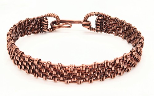 In this updated project, use 7 base wires and 3 simultaneous weaving wires to create the pattern for this cuff bracelet. Tips and tricks for controlling long lengths of wire will be shared. Learn how to end the weaving wires, shape the cuff, and create a hook closure.