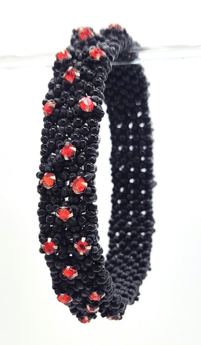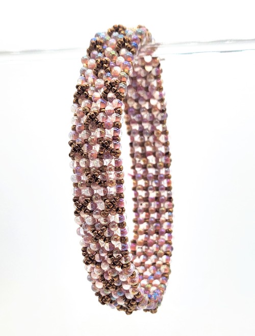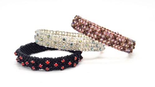 Flat right angle weave with peanuts or round Tohos make up these loving bangles. Each is a little different.